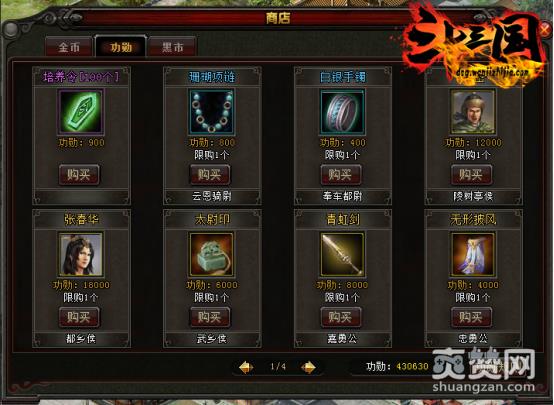 在玩机之家《斗三国》中的商城中,有三个部分,分别为金币商城、功勋商店和黑市。金币商城中出售至尊宝箱和赤金宝箱,宝箱中能开出银币、体力、功勋、声望和稀有的金装和红装。金币商城中出售特殊的稀有首饰,装备上角色瞬间感觉自己萌萌哒,我就是和别人不一样!,不过需要注意的是需要相应的VIP等级才能购买哦。而功勋商店中的商品有购买次数,每个商品需要达到一定的爵位才能购买。购买时所需要的功勋可以通过竞技场排名、挂机讨伐、开宝箱等形式获得。