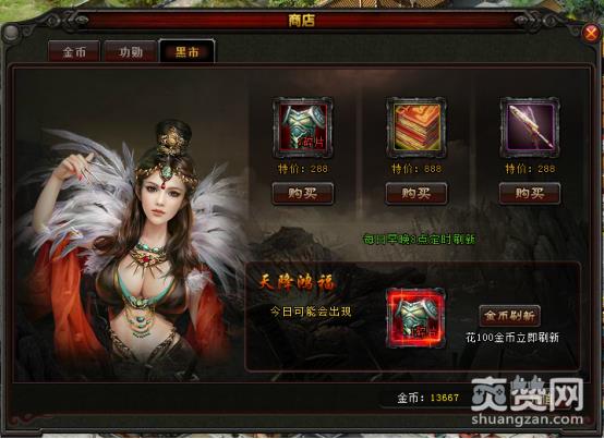 在玩机之家《斗三国》的商城系统中,另一个别具特色的商店就是黑市商店啦,其中会刷新出各种稀有的道具。每天早晚9点自动刷新,玩家也可以通过金币来刷新黑市中的商品。尤其是在三国世界中当出现有特殊活动时,黑市中会出现平时没有的特殊商品,每次刷新将有一定概率出现哦!而黑市中出售各种金光闪闪牛逼哄哄稀有装备和道具,走过路过不要错过,届时还将有打折扣,进入商城直接点击购买绝不剁手,就是这么帅气任性!