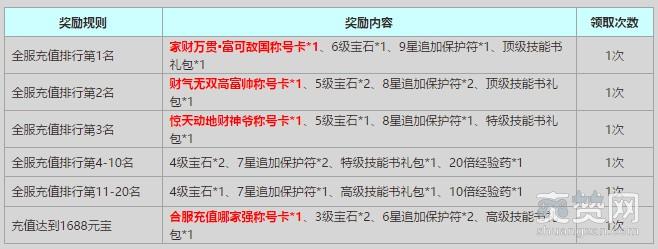 【活动内容】活动期间玩家充值排名符合条件即可领取丰厚奖励。