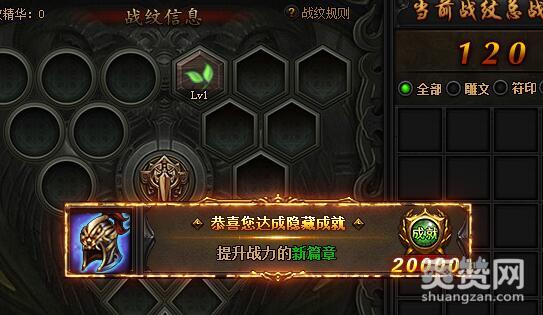 图例:第一次镶嵌战纹,能够获得隐藏成就20000积分,开辟您提升战力的新篇章。