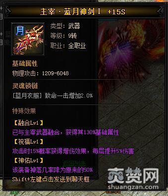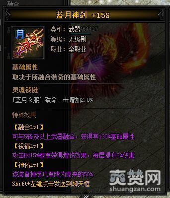 按照上述公式,就能合成主宰·蓝月神剑I,下面再让我们看一下它有哪些独特的属性和特殊效果吧。