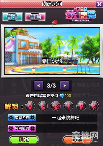 今天是一年N度的虐狗大战,单身汪们怒摔狗粮,争取脱单吧!在《4399梦幻恋舞》的音乐舞蹈世界里,如果遇到一见倾心的TA,那就告白吧,万一成功了呢?不要急,先来预习一下流程吧,告白大作战开始!《4399梦幻恋舞》官方网站:http://my.4399.com/yxmhlw/首先,我们需要创建一个告白房间。告白房间可以用金币创建也可以用钻石创建,费用越高的房间,可以解锁的“姿势”越多哦!