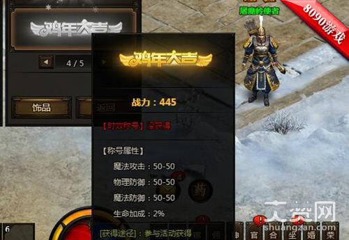 既然今年是鸡年就不得不提到8090赤月传说2中的鸡年大吉的称号,在新春活动中通过累计签到就可以获得咯,达到一定的累计签到的次数就可以成功激活了呢,如果这次没有激活的话那么下一次获得这个称号就不知道是什么时候了。