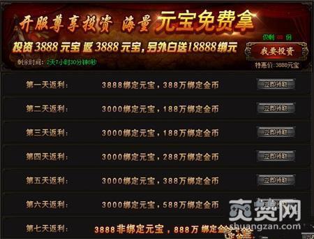 为3888元宝+18888绑元。累计收益达到投资额度的10倍不止~。