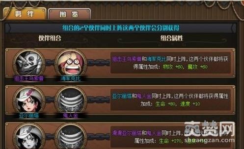 可以在图鉴中查看有羁绊的伙伴,这些伙伴组合上阵的话会获得额外的属性加成哦