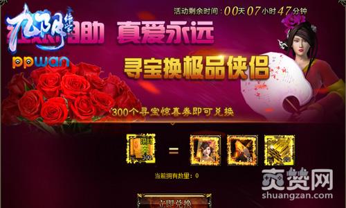 在ppwan《九阴绝学》中,全新的绝版侠侣玩家只能参与运营活动才能获得。目前,只要玩家集齐300张寻宝有礼券,就可以在ppwan《九阴绝学》的精彩活动界面兑换小红娘侠侣、大量的灵魂原石和金条。时间有限,错过了这次以后不一定再有机会获得哦!