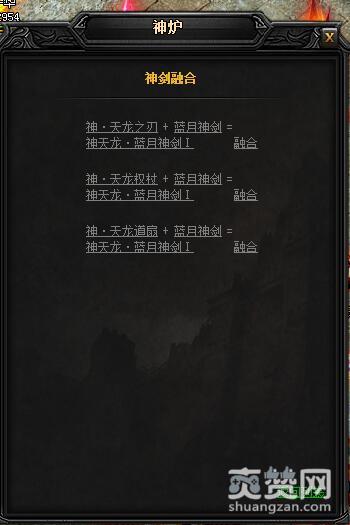 神·天龙道扇+蓝月神剑=神天龙·蓝月神剑I。