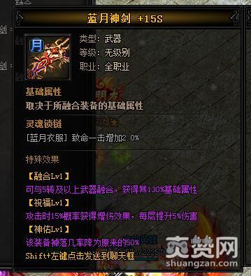 按照上述公式,就能合成神天龙·蓝月神剑I,下面再让我们看一下它有哪些独特的属性和特殊效果吧。