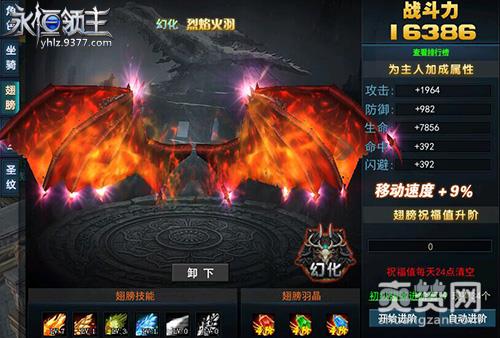 此外,9377《永恒领主》当中的特色翅膀系统,还拥有“翅膀羽晶”这一培养玩法。领主们可以消耗攻击、生命、防御三大羽晶来对翅膀进行强化,来额外获得相应的属性加成。而各种翅膀羽晶材料,可通过成就奖励、参与“洪荒之力”活动、钻石购买等途径来获得。