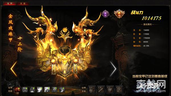 宝甲共分为十二阶,分别为:圣辉骑士甲、沧澜紫绶盔、鎏金麒麟盔、紫焰窟魔甲、圣光战神甲、枭焱守卫盔、圣光飞翼甲、沧澜紫绶盔、紫焰窟魔甲、神光辉耀甲、虹光飞羽甲、金凤戏珠甲,其中金凤戏珠甲为最高阶段,装备此宝甲后可以大幅提升角色战力,通过九曲黄沙阵获取宝甲进阶石就是免费玩家的一大选择,通过消耗宝甲进阶石,达到逐渐晋升宝甲的目的,你的战力绝对无人可匹敌!