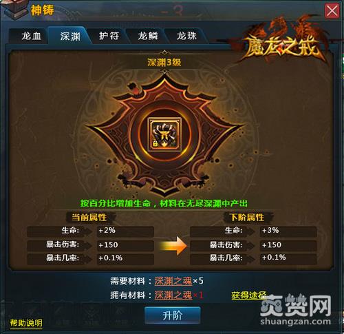 在【无尽深渊】的挑战中,玩家每通过一层就能够获得5个深渊之魂,在击杀BOSS后深渊之魂的获得数量将得到倍数级增长,让你能轻松实现深渊之力的超进阶!在神铸系统中,玩家通过强化深渊可以提升战斗暴击率,超神的一击必杀你也能实现!想要武功盖世,深渊之力打造的神级天兵值得拥有!
