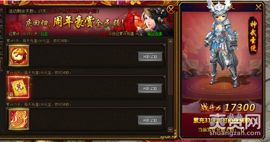 【活动时间】2017年1月19日更新后-2017年2月8日23:59:59 【活动内容】活动期间,玩家每日只需充值100元宝,即可累计充值天数1次,连续多日充值更能领取珍稀物品奖励,幻形精魄,3级增幅宝石,炫酷宠物幻化等你来拿!