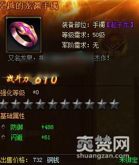 卓越的龙渊手镯是50级赵子龙的手镯装备,需要6个橙装碎片才能进行兑换。