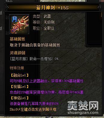 按照上述公式,就能合成圣虎威·蓝月神剑I,下面再让我们看一下它有哪些独特的属性和特殊效果吧。
