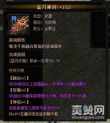 按照上述公式,就能合成圣天龙·蓝月神剑I,下面再让我们看一下它有哪些独特的属性和特殊效果吧。