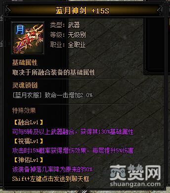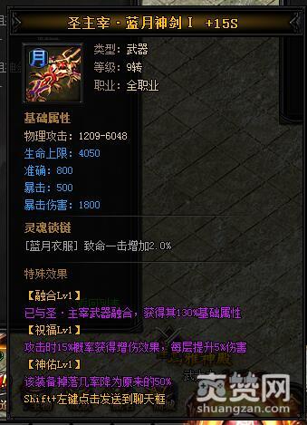 按照上述公式,就能合成圣主宰·蓝月神剑I,下面再让我们看一下它有哪些独特的属性和特殊效果吧。