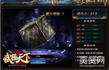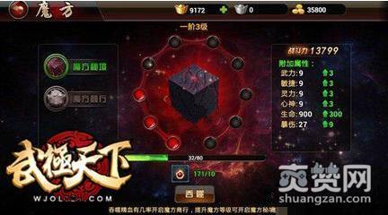 魔方是《武极天下》中的独有玩法,玩家只要完成主线任务就可以激活魔方,它是玩家在游戏中提升战斗力的重要途径,可以提供减伤、魂值、普防、属防、抗暴等五大属性。其中魂值甚为重要,魂值可以抵受玩家在战斗中所受到的伤害,也就是盾牌的作用!