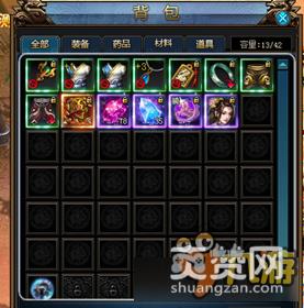 五个标签-【全部】【装备】【材料】【道具】【药品】,点击不同标签可以查看不同类型的道具。