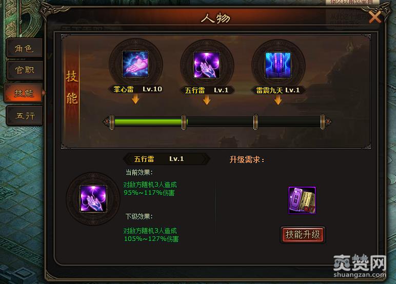 人物的技能面板包含了技能说明以及效果,玩家可在相关面板进行技能的查看和升级操作;