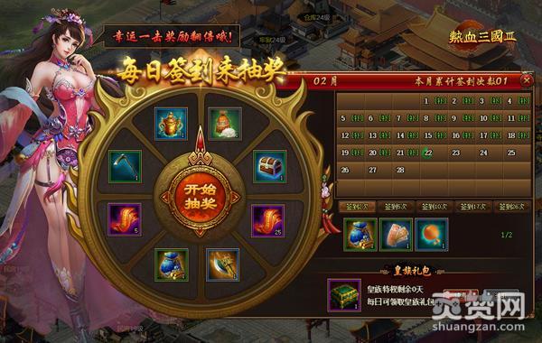 做日常任务,顺便领取福利吧!跑商、培养将领、升级、强化……,这些在《热血三国3》之中想要变强就必做的事情,做完了还能获得额外的奖励?在游戏中,通过日常活跃界面,我们可以通过完成一些简单要求,稀世珍宝、黄金、器灵、紫装等奖励,都可轻易领取!而想得到这一切,所需要的只是正常的玩游戏就可以了!