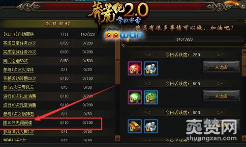 世界牢狱是ppwan《莽荒纪》中针对VIP玩家的一次奖励性质的顶级活动,活动共分为三个等级:天神囚徒(VIP1)、道祖囚徒(VIP6)、世界囚徒(VIP9)。在游戏中只要玩家达到相应的VIP等级便可每天享受这样免费珍贵道具掉落的好机会。