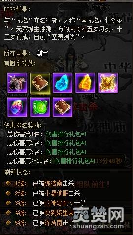 3、击杀野外BOSS伤害排行榜上的玩家都可获得奖励。