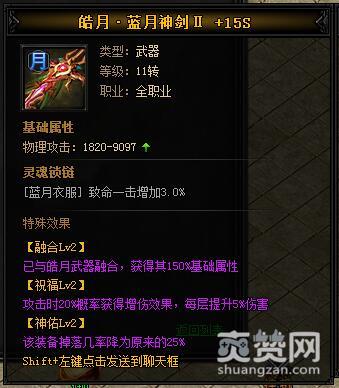 按照上述公式,就能合成皓月·蓝月神剑II,下面再让我们看一下它有哪些独特的属性和特殊效果吧。