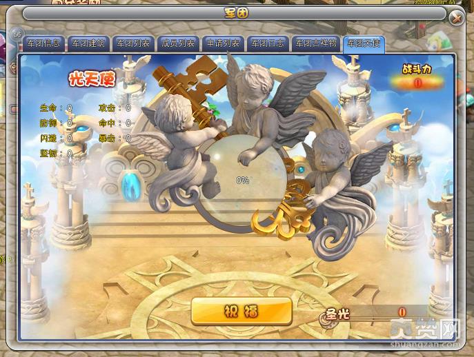在获得了圣光之后,就可以希望之歌2的军团面板——军团天使界面中将圣光祝福天使。当圣光值达到100%时,天使便能进化,进化后就能获得丰厚的属性加成了哟。
