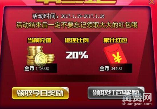 1.活动期间玩家在游戏内的每笔充值进行记录,按照充值金额的不同可获得不同比例的金币返利(最低充值金币数为100金币),最高可获得20%的金币返还。