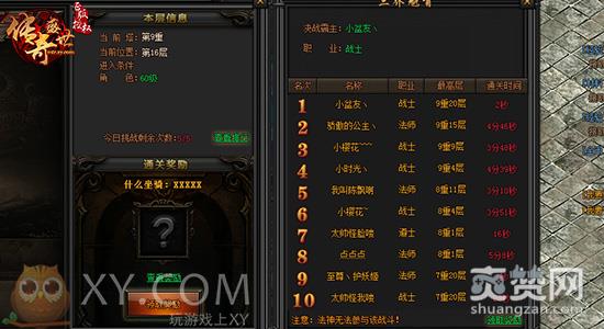 三界塔不仅是玩家提升等级和战力的修罗道场,实力强大的玩家更可以通过三界塔扬名江湖!点击三界塔的排名,可以看到“三界魁首”界面,如果你通关的层数足够高,你通关的速度足够快,那么你就能在排行榜上留下自己的名字,受到全服务器勇士的瞻仰!每周的三界塔第一名奖励非常有诱惑力,所以众多勇士前赴后继,为了荣耀不懈奋斗!