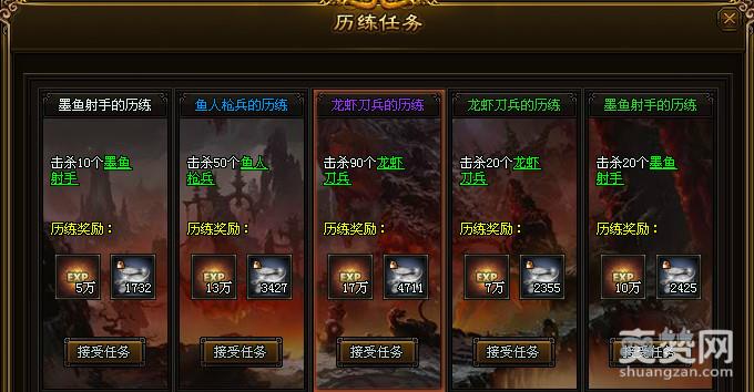 如果您对所有任务的品质和收益都不满意,可以在未接取任务前点击刷新任务,消耗5点积分或2绑元或2元宝重新随机5个任务。