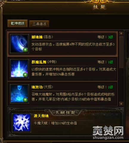《烈火西游》的技能系统包括2大功能,分别是乾坤绝技、三清道法。下面分别简单介绍一下: