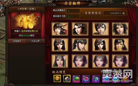 翻牌见美人,豪礼送不停!曾经,翻牌子是专属于皇帝的高级休闲活动,如今,这项春意盎然的放松项目却走进了寻常百姓家,人人都可以与后宫美人们一度春宵放松身心。49you《游龙仙侠传》“后宫翻牌”玩法,翻牌每天有3次免费次数,一共12张牌,每次翻牌都可以获得对应的奖励,每次翻牌还有概率抽中奖金池的铜钱,抽中大奖会获得当前奖金池的所有铜钱。美人豪礼统统有,让你周末爽翻天!