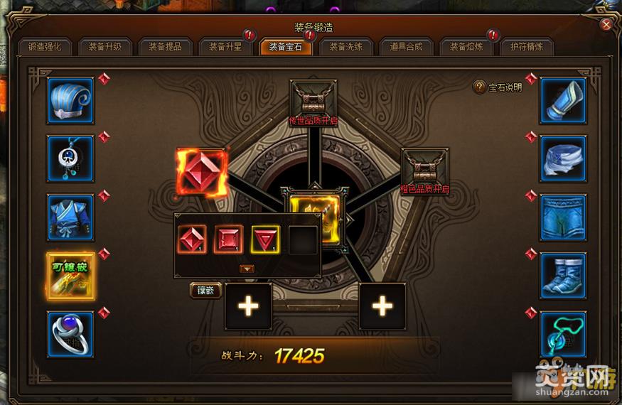 三、 当装备品质到一定阶段时,可以就可以打开装备宝石孔,在宝石孔内可以镶嵌对应的宝石;