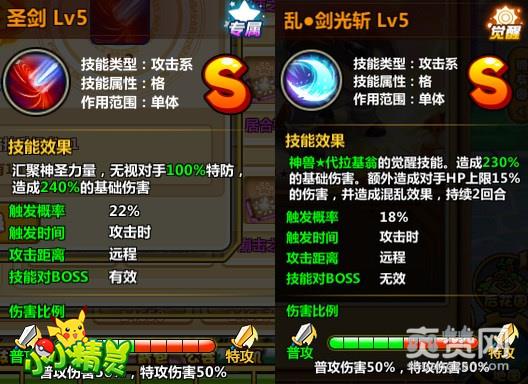 圣剑士的强大不仅在于领先其他精灵的种族值,更依赖于【剑光斩】、【下马威】等专属技能,双辅助技加上神圣攻击,双重伤害的威力无法想象!三剑客们最霸道的攻击技能,当然是超S级格斗技【圣剑】,汇聚神圣力量,无视对手100%特防而直穿要害,造成240%的暴击伤害,道馆和竞技场之王必将属于圣剑士!