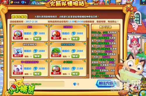 火箭队情报站突袭,神兽情报全面泄露!【巨钳螳螂】、【乘龙】、【路卡利欧】等紫色精灵的精灵球限时上架,更有传说级人气神兽【梦幻】等你来兑换,数量有限,先到先得!本周大师赛紫色组切磋场已全面开启,快到情报站捕捉紫色精灵,冲击大师赛的冠军宝座,领取Mega进化石!