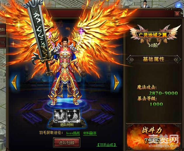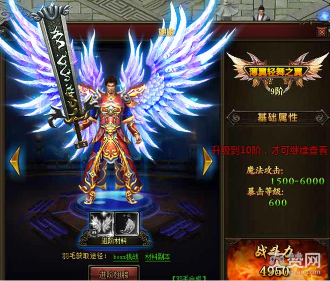 在比林游戏《弑神传说》中到达52级以后就会翅膀在升一次更加炫酷霸气!!!