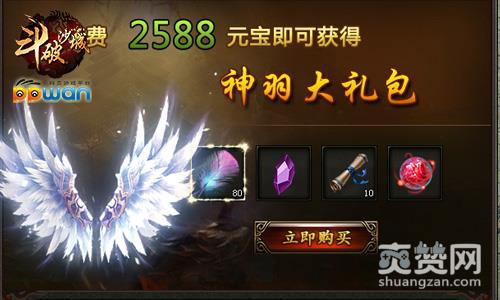 神羽礼包在ppwan《斗破沙城》中需要花费2588元宝购买,开启礼包玩家将会获得80根灵羽、魂珠碎片、副本卷轴和500万经验丹!且不论经验丹可以快速提升玩家的等级,80根灵羽就会让玩家的翅膀升级到前期可观的等级,玩家的各项属性得到增加,实现战斗力的增加!