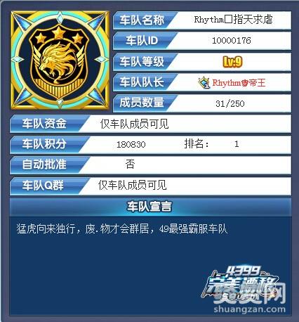 别怕,点击对应的车队就可以看到他们的车队信息啦!不仅可以看到车队的等级、队长、成员数量还可以看到车队的宣言以及积分排名哦!