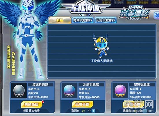 1、车神雕像:通过点击车队神像激怒贡献页面,使用祈愿球进行祈愿,每日首次的普通祈福是免费的哦。 你的贡献会给车队带来车队币、个人贡献还有车队资金,是车队升级的重要来源。