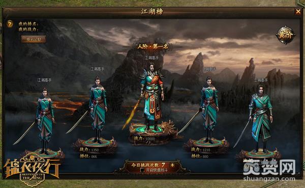 身披锦衣,非胜即败。《锦衣夜行》中,只要你完成了主线任务即可开启江湖榜系统,你可以向他们逐个发起挑战。每位玩家每日均有10次挑战的机会,看他不爽?那就约战江湖榜吧,如果挑战名次高于自己的玩家,赢了还可以提升自己在江湖榜的名次!