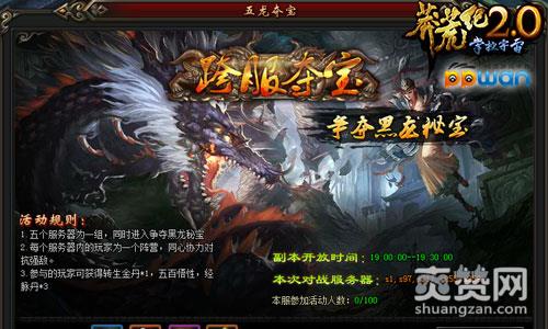 五龙夺宝是ppwan《莽荒纪》中为数不多的跨服系统,每个服务器为一组,同时进入密境争夺黑龙秘宝。在密境中同一个服务器的玩家进入密境自动成为一个阵营玩家,同心协力对抗强敌。当然了,每个参与的玩家都可以获得转生金丹*1、五百悟性、经脉丹*3,是不是很丰厚啊。哦对了,黑龙秘宝每天19:00开启争夺!