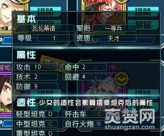《战车少女》中少女有5种属性可供玩家选择提升在战车附加属性上,分别是攻击、命中、技术、回避、防御。作用各不相同,搭配也千变万化,可衍生出数不尽的战术,这些属性共同决定了玩家的战斗力。