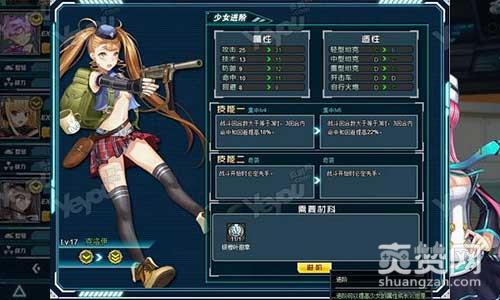 除了以上介绍的战车,在《战车少女》中少女系统也是不得不提的重要系统,与其他网游不同的是,在《战车少女》中玩家可一次性出站25位少女搭配对应的25辆战车参与战斗,怎么样是不是有一种身在后宫不知宠幸哪一位佳丽的错觉,少女五种不同的属性搭配可衍生出无数的战术与套路,更有军衔进阶让你的萌妹子们越来越强大,技能也会因为军衔的提高而变得更加强力哦!