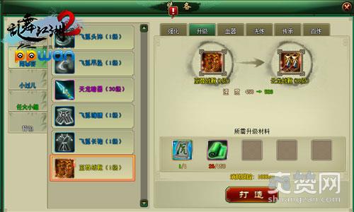 当然了,在ppwan《乱舞江湖2》中想要进行装备属性的激活和洗练,首先玩家要让角色装备等级达到30级才行,所以在装备系统中就衍生出升级系统。而在游戏中升级装备,玩家需要准备一本打造书(例如:云龙护符、战靴等等),以及打造装备时所需的材料道具(各大活动中获得)。