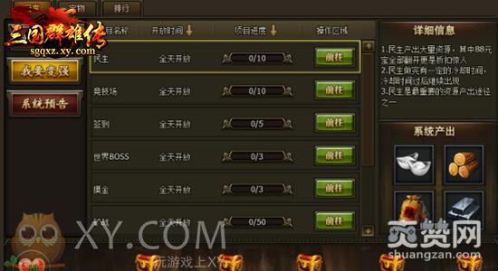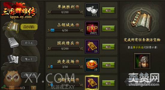 三国是强者的天下,实力才是决定一切的硬道理!XY游戏《三国群雄传》真实还原了三国势力的发展历程,玩家需要在游戏中发展资源、增强军备,从而提升军队战斗力和国家的实力。XY游戏《三国群雄传》丰功伟绩系统便将这一切细化,想要升级,便勤做任务,奋勇杀敌;想要变强,就发展民生、乐于捐献。完成这些挑战后,还可在XY游戏《三国群雄传》丰功伟绩系统积累活跃度,开启大宝箱。国之命运握你手,丰功伟绩传千秋!