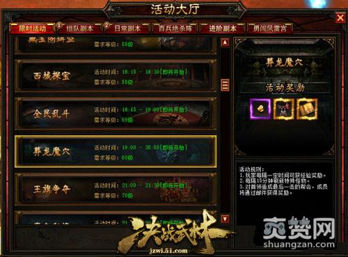 51《决战武林》是由著名动作影星甄子丹代言的古装超S级3D硬功夫真武侠ARPG页游巨作,让玩家穿越回元朝末年,体验江湖恩仇。一个号称埋葬了龙王的地方,江湖人称其为“葬龙魔穴”。51《决战武林》葬龙魔穴中隐藏了五大BOSS,每个BOSS都身负洪荒之力,不可小觑。在这样的活动中,任何一个参与击杀BOSS的玩家都有可能获得高额奖励,带给BOSS伤害的前三名还有更多意想不到的奖励。利益诱惑下,许多强势帮会清除异己独霸奖励。这就是江湖上弱肉强食的法则,物竞天择,适者生存!到底是葬龙魔穴还是葬身此地,小编通过自己在51《决战武林》游戏中的经历,为大家讲述一段不为人知的故事。