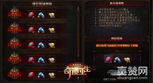角斗场最早是在意大利罗马的一个知名建筑物的名字,在这里经常会举办一些人与兽的战斗。《奇迹重生》里的角斗场自然没有如此的残酷,但是玩家之间的对抗会更加的激烈。角斗场这里关系到玩家竞争排名,而系统给予的奖励就会根据排名来进行发送,所以争取更高的排名非常重要。