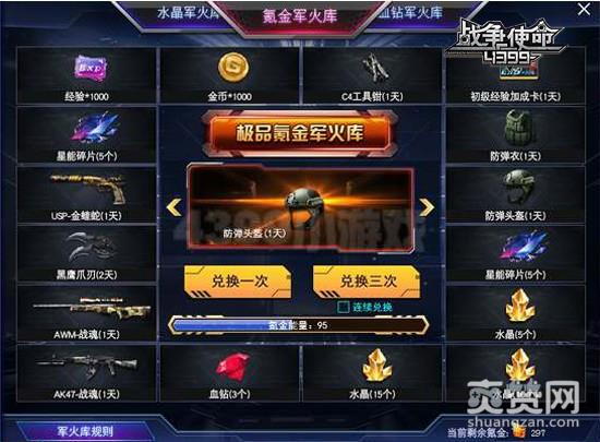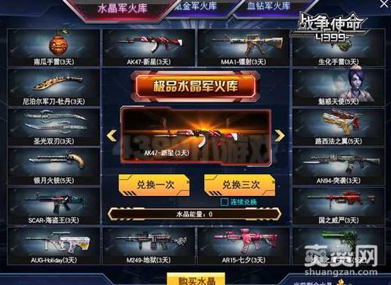 水晶可以通过购买或者氪金军火库抽取获得。30水晶可抽奖一次,80水晶可抽奖三次。每次抽奖后都可累计水晶能量,水晶能量满200可开启极品水晶军火库。