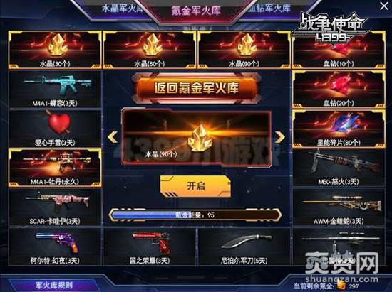水晶军火库:分为水晶军火库和极品水晶军火库。